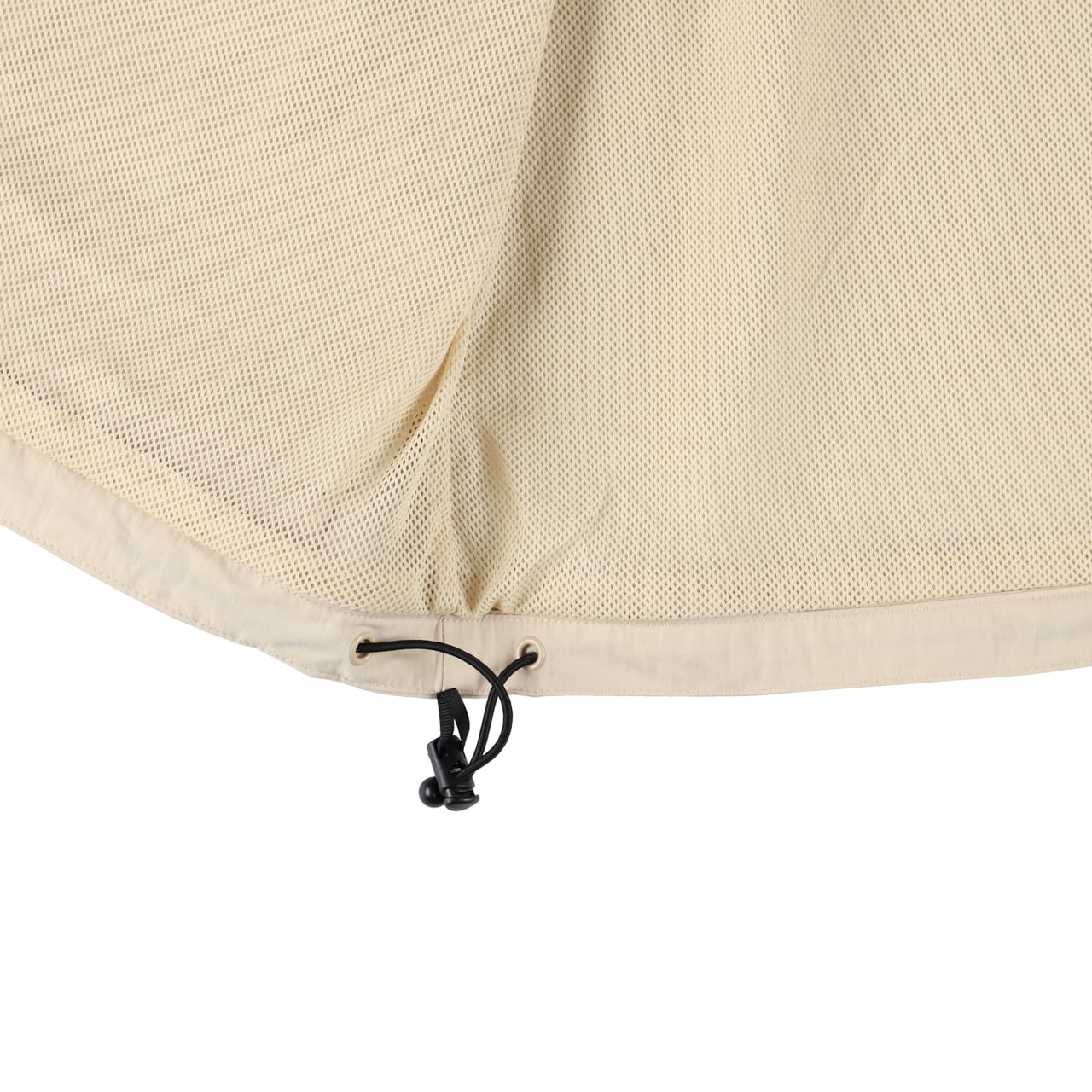 表地は撥水加工を施したコットンナイロン素材。インナーメッシュを備え、肩馴染みのよいラグラン仕様なので動きの妨げもなく、スポーツ時(軽いので走ってても気になりません)でも普段着としても使い勝手が良いジャケットです。